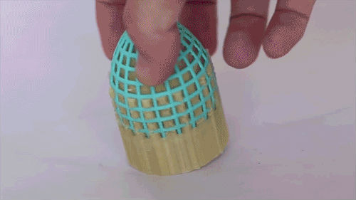 可以做人體等帶硬骨架的軟模型:TPU材料做皮膚,PLA材料做骨骼,通過雙噴頭復合打印,便能得到一個具有骨架、具有軟表面的模型。