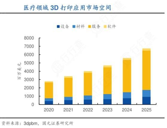 另據國外媒體3dpbm數據顯示,2020年全球醫療領域3D打印市場規模約28億美元,2025年有望達到67億美元。